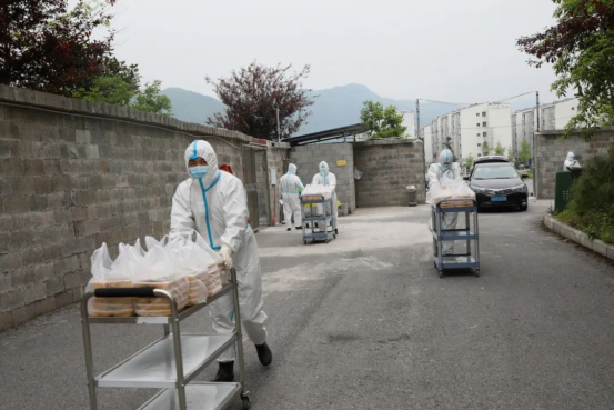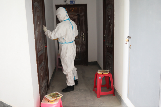 需求量大、時(shí)間緊張、人員緊張,平日里看似簡(jiǎn)單的一日三餐,在這特殊時(shí)期成為一場(chǎng)嚴(yán)峻考驗(yàn)。宴欲曉、劉堯等幾名工作人員在完成隔離點(diǎn)日常工作的同時(shí),送餐服務(wù)成了工作量最大的事情,每餐要按時(shí)精準(zhǔn)地將餐食送到被隔離人員,成了名副其實(shí)的送餐“服務(wù)員”。他們中年齡最大的晏欲曉53歲,最小的劉堯26歲,工作崗位不同、年齡不等,但都有著共同的心聲——像秒針一樣奔跑,送上熱乎飯。每人負(fù)責(zé)一棟樓的餐飲物資配送、垃圾收納轉(zhuǎn)運(yùn)、環(huán)境衛(wèi)生清掃、人員管理等工作。每天他們想的最多的就是“每日用餐人數(shù)必須準(zhǔn)確、所用時(shí)間必須最快”。“我是當(dāng)兵出身,最臟最累的活就交給我吧”,劉堯作為一名退役軍人,時(shí)刻保持軍人本色,他永遠(yuǎn)都是竭盡全力做好每一項(xiàng)工作,用自己的汗水傳遞著正能量,無(wú)時(shí)無(wú)刻展示著退役軍人的風(fēng)采。他們不管多臟、多難、多累,始終做到了用微笑和飽滿的熱情面對(duì)工作,為隔離點(diǎn)疫情防控工作提供了堅(jiān)實(shí)的后勤保障。