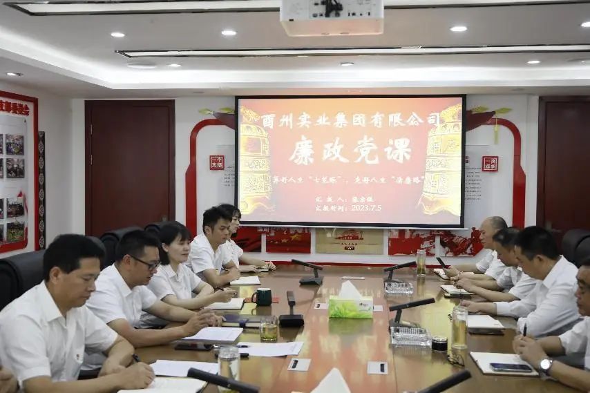 【7月6訊 吳小琴】 為充分發(fā)揮廉政教育的警示作用,夯實集團廉政建設(shè)根基,進一步推動“清廉國企”建設(shè)走深走實。7月5日,酉州實業(yè)集團黨總支組織開展觀廉政基地、上廉潔黨課、從溫入黨誓詞、為黨員過政治生日等相關(guān)主題黨日活動。集團班子成員、部室(子公司)負責人、關(guān)鍵崗位人員和全體黨員同志參加。