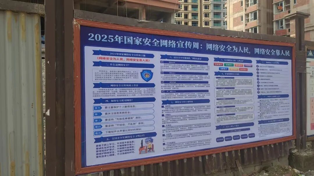 活動期間,集團緊扣“網絡安全為人民 網絡安全靠人民——以高水平安全守護高質量發展”主題,以“網絡安全知識”為切入點,圍繞網絡安全形勢、網絡安全意識、網絡安全教育等方面內容開展宣傳活動。通過在機關辦公區域、施工現場、開發小區和其他經營場所懸掛宣傳條幅、擺放網絡安全宣傳展板、Led電子屏滾動播放標語等多樣化宣傳形式,推動網絡安全宣傳活動落實落地,營造安全、健康、文明的企業網絡環境。