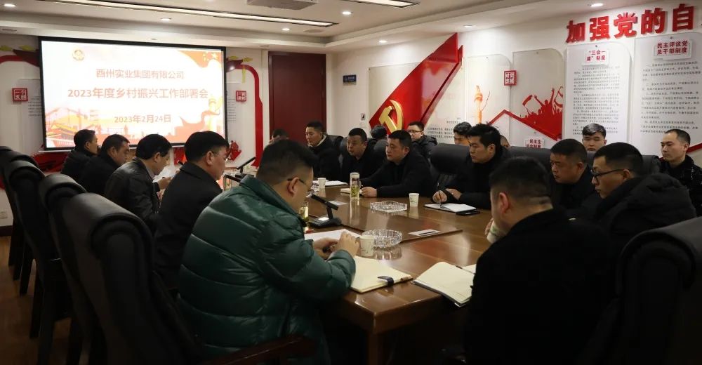 2月24日,酉州實業集團召開2023年鄉村振興工作部署會,會議由杜平周監事長主持,集團公司班子成員、鄉村振興駐村人員、幫扶干部、“三回三講三干”行動下派工作人員及相關部室負責人參加會議。